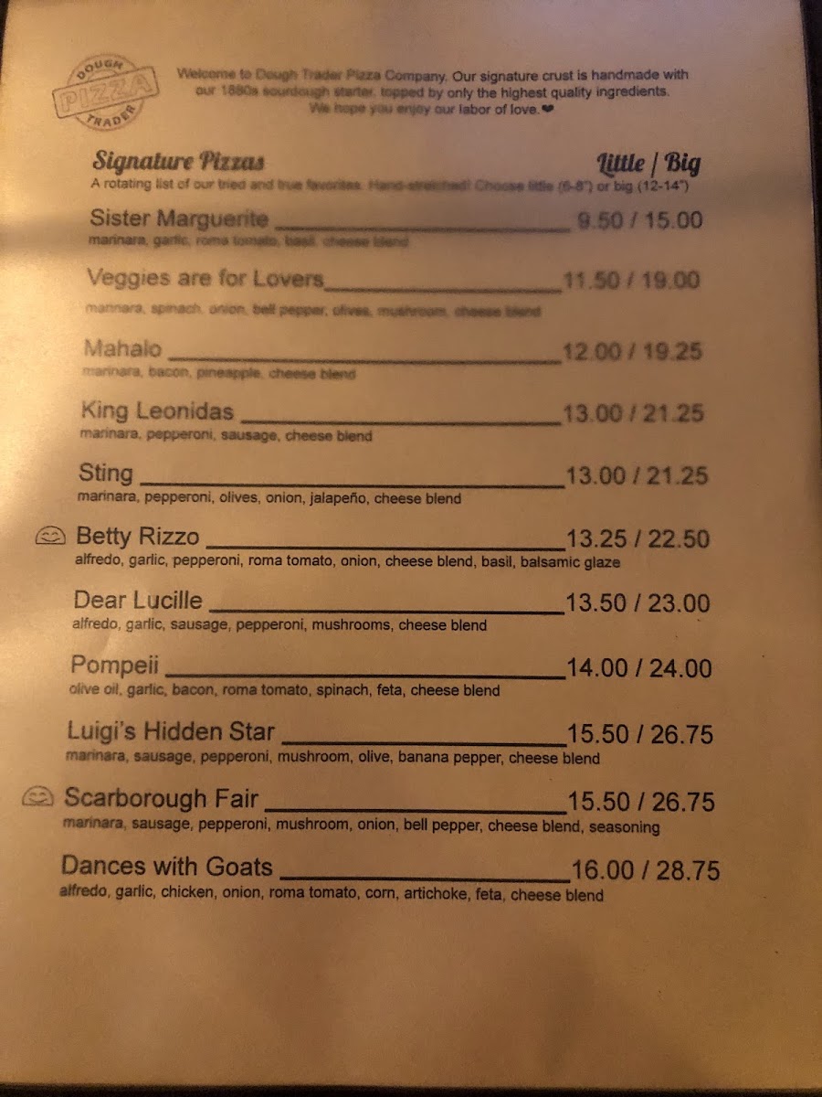 Welcome to Dough Trader Pizza, a hidden gem located at 543 W Jackson Blvd, Spearfish, SD. This eatery is celebrated for its hand-tossed sourdough crust, which is wood-fired to achieve a delightful crispness that keeps its integrity with every bite.